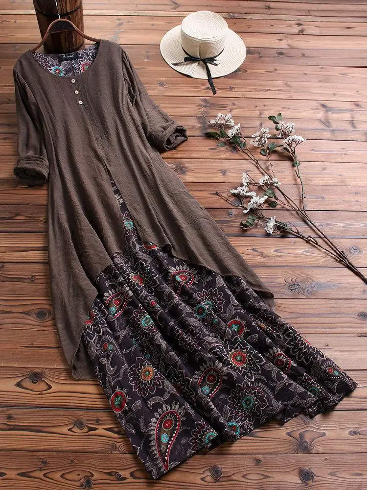 This item is along with has features of 4xl 5xl patchwork Retro long dress big size floral bobo dress casual maxi dress plus size clothing .